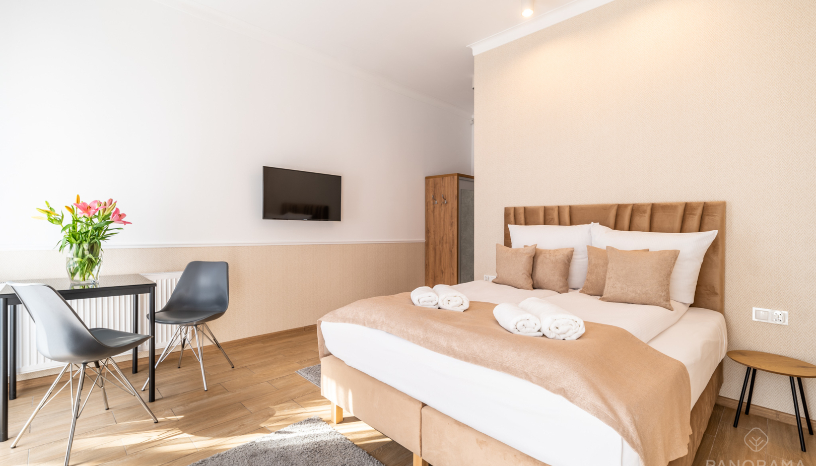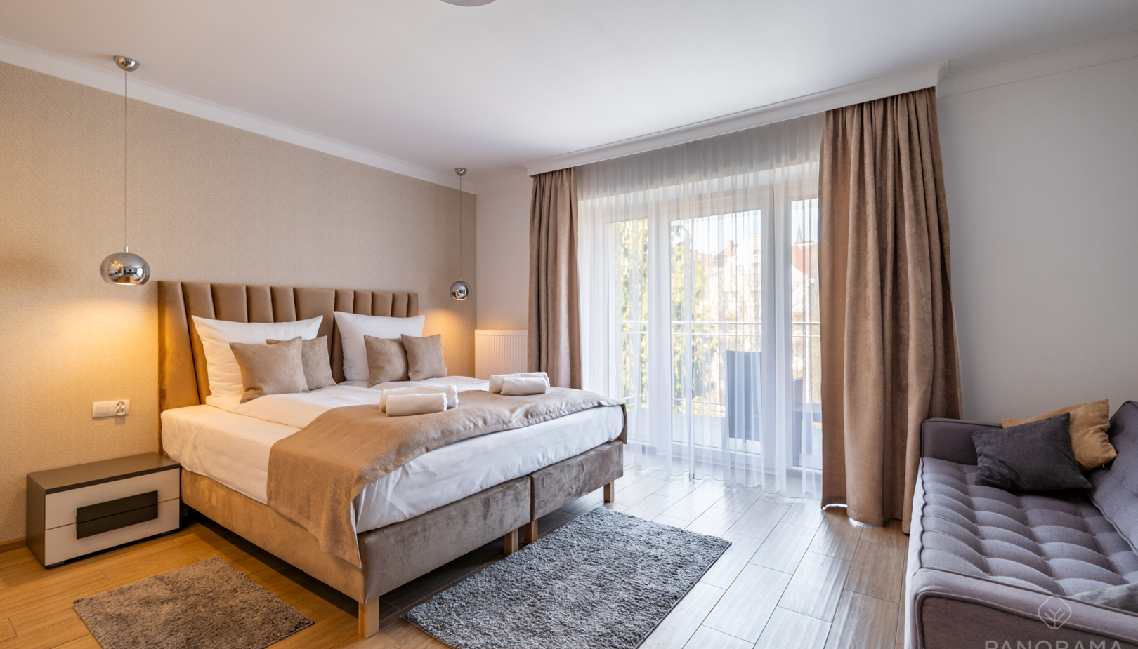 to elegancki, kameralny obiekt noclegowy otwarty w lipcu 2017 roku. Naszym celem jest aby połączyć nowoczesny design z atmosferą prywatności oraz co dla nas bardzo ważne indywidualnym podejściem do Gościa. Na czterech kondygnacjach na naszych Gości czekają wygodne i przestronne pokoje oraz apartamenty. Każdy posiada łazienkę, telewizor plazmowy, Internet bezprzewodowy, czajnik. Apartamenty dodatkowo wyposażone są w aneksy kuchenne. Za obiektem znajduje się parking dla samochodów osobowych Gości. Z okien w pokojach od południa naszego obiektu roztacza się przepiękny widok na park. Doskonała lokalizacja stanowi idealną bazę wypadową dla osób pragnących zarówno leżakowania na plaży jak i aktywnego wypoczynku lub zwiedzania miasta wraz z licznymi atrakcjami czekającymi na Turystów.